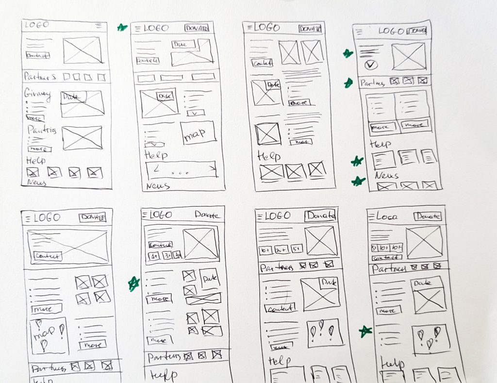 Quick sketches on paper to visualize ideas and layout structure before moving to digital tools.