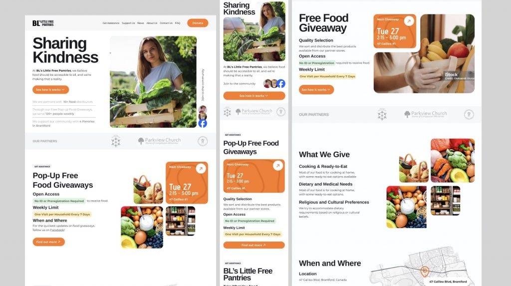 In December 2024, BL’s Little Free Pantries plans to launch a new website designed to streamline communication and improve access to information for food recipients, volunteers, and sponsors. The design and features are directly influenced by user research and insights gathered during the project. This implementation will serve as a central hub for community members to easily find food distribution schedules, volunteer opportunities, and sponsorship details.